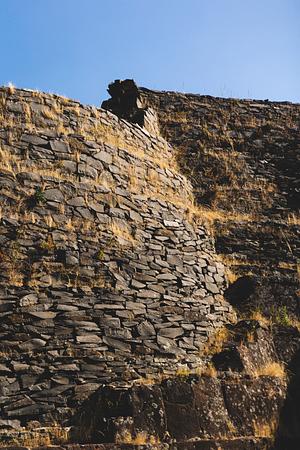 The aged walls of the ruins at Tzintzuntzan near Lake Patzcuaro in Michoacan, Mexico.