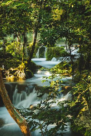 A tranquil scene along the Tamasopo River in San Luis Potosí, Mexico.