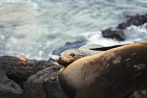 A game of peek-a-boo with this baby sea lion on San Cristobal. Galapagos Islands, June 2023
