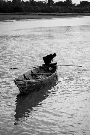 A local boy rows onto the Marañon River outside of Yurimaguas, Peru. August 2023