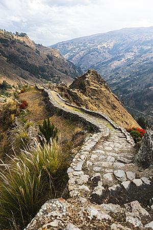 A view of the Peruvian Andes, seen from the Incan ruins of Chupan. July 2023